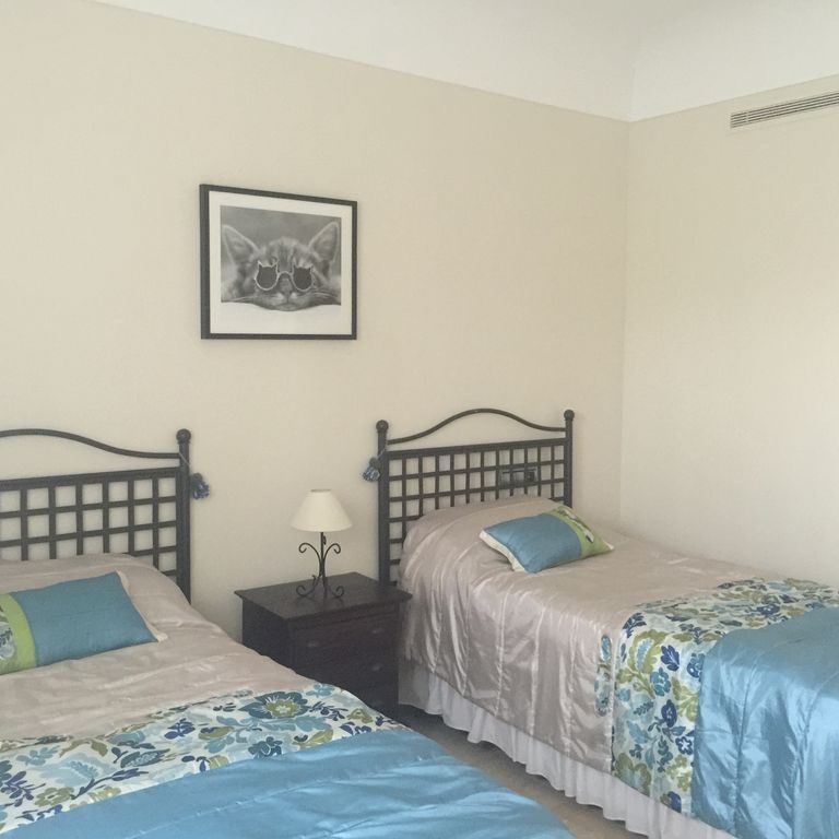 Ideal for summer holiday rental, our apartment is on the ground floor with views across a nature reserve and river to the sea and Gibraltar.